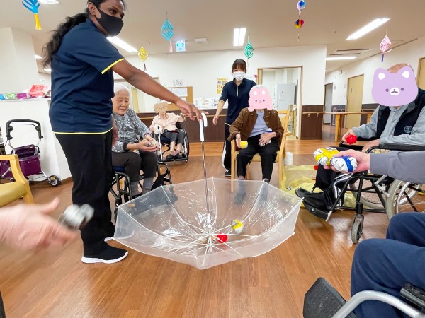 ご利用者様もテレビの向こうからの声掛けや私たち職員に協力して動いてくださったおかげで