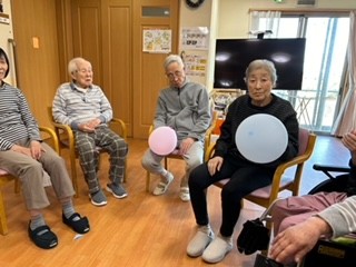 新聞紙を追って頂いたり、風船バレーを楽しんだり