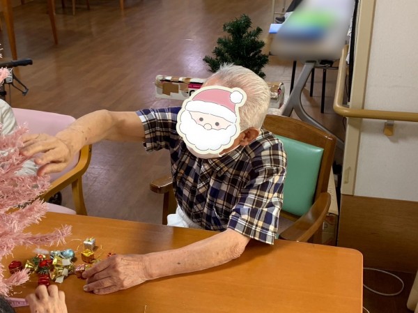 ご利用者様とクリスマスツリーの飾り付け