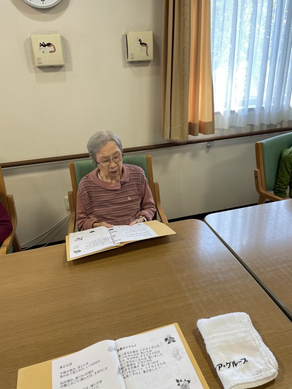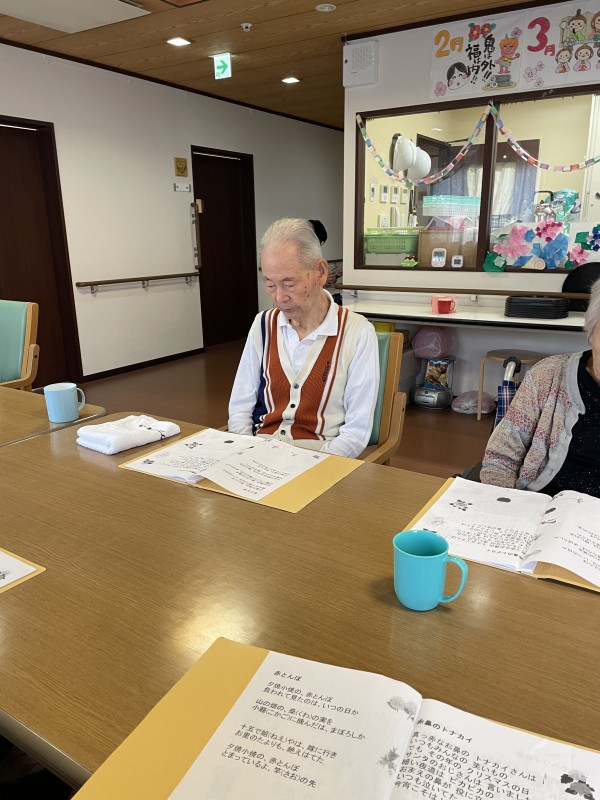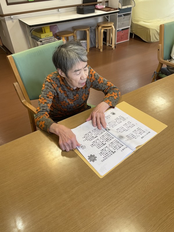 食事の合間や午後のレクの時間などに入居者同士で曲目を決めて歌われています。