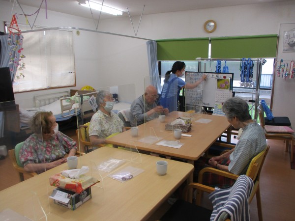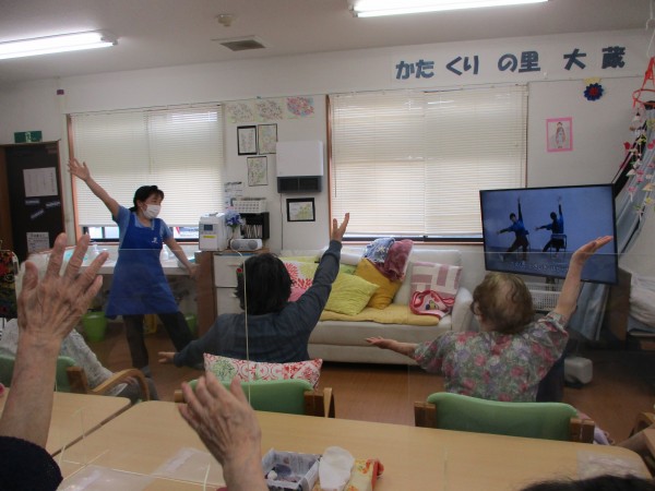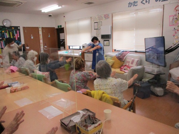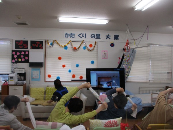 集団体操は 機能訓練指導員や看護士または介護スタッフが昼食前に実施しているものと
