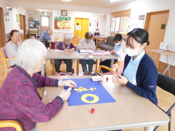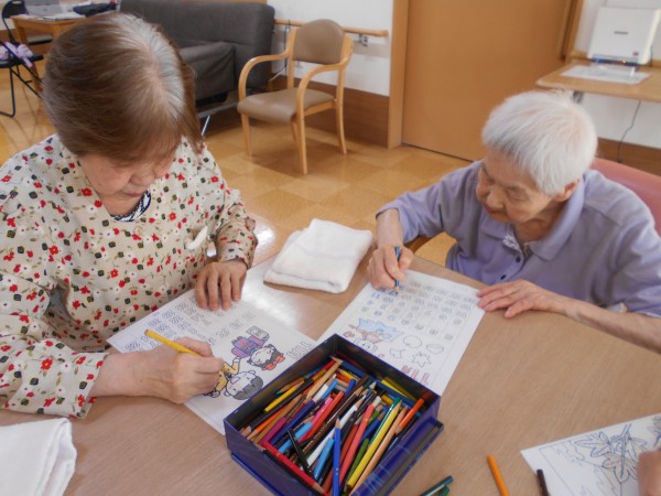 他にも塗り絵をしたり、居室で休まれたり、隣の桃フロアまで散歩したりご自分のペースで過ごされている方もいたりと