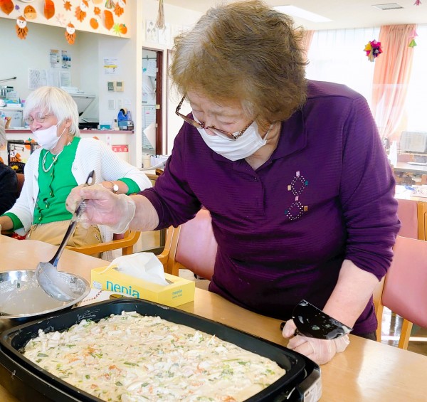 野菜を切ったり、粉をかき混ぜたり皆様手よく調理して下さいます!