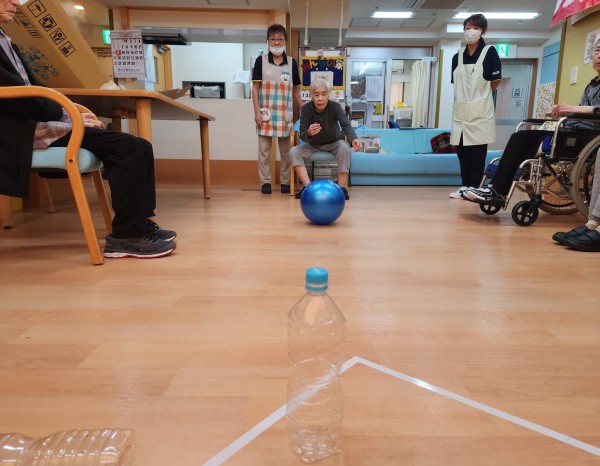 一人3回ボールを投げ、何本ピンを倒せるかを競います!