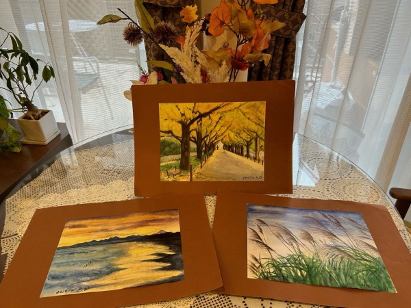 秋の街路樹の風景画を書かれている入居者様を突撃訪問‼いたしました。