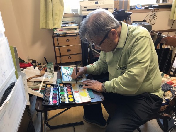 今は秋の風景画だけではなく浮世絵にも興味を持たれ、旅行がお好きとの事もあり宿場町の浮世絵を写生されていました。