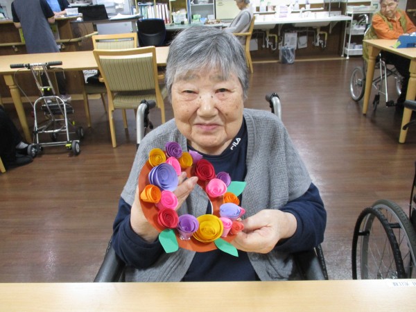 しっかりと仕上りで、綺麗な“ペーパーフラワーリース”となりました。