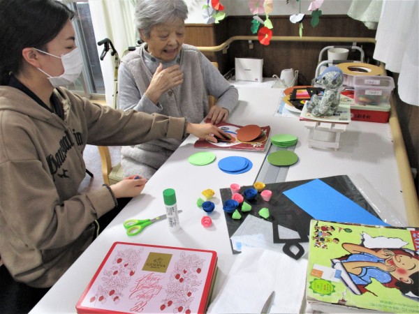 今年のくクリスマス会は、“ステンドグラス風飾り”と““ペーパーフラワーリース”で盛り上げます。