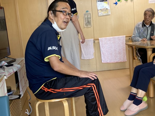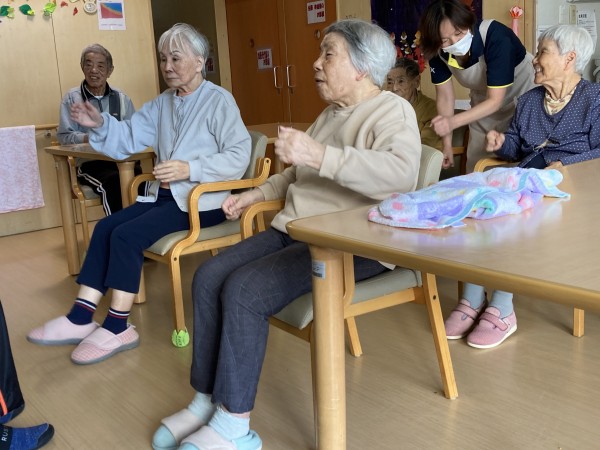 レクリエーションの時間、今日は最近2階から移ったスタッフによる体操教室です。