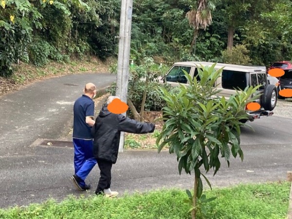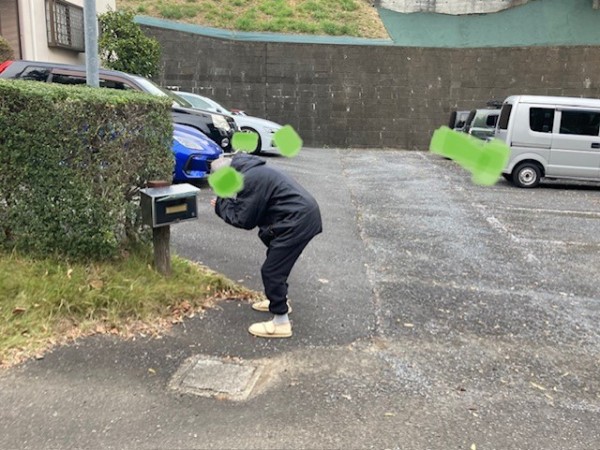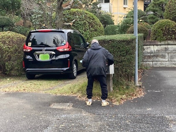 お願いすると快く「いいよぉ!今から?」「寒いからジャンパー着ないとだな」とおっしゃってくださり、スタッフと一緒にいざ回覧板をお届け!