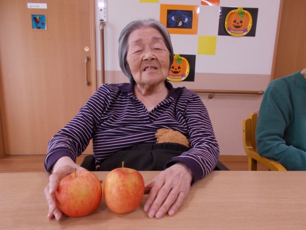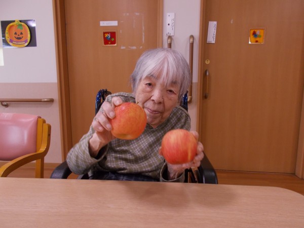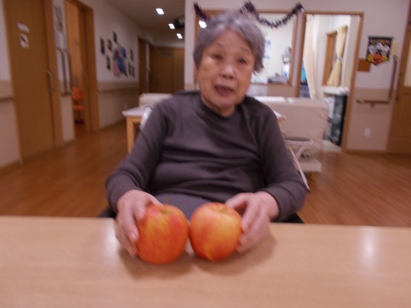 この大きなリンゴを、おやつの時間にお出ししましたが、