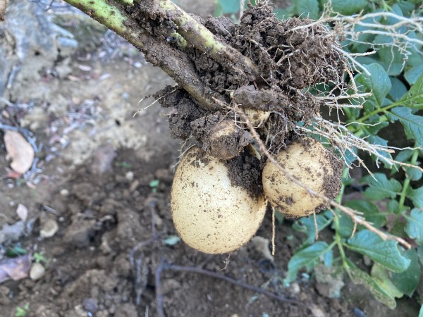 ひとふさ抜いてみましたが、結構大きなジャガイモができていたので