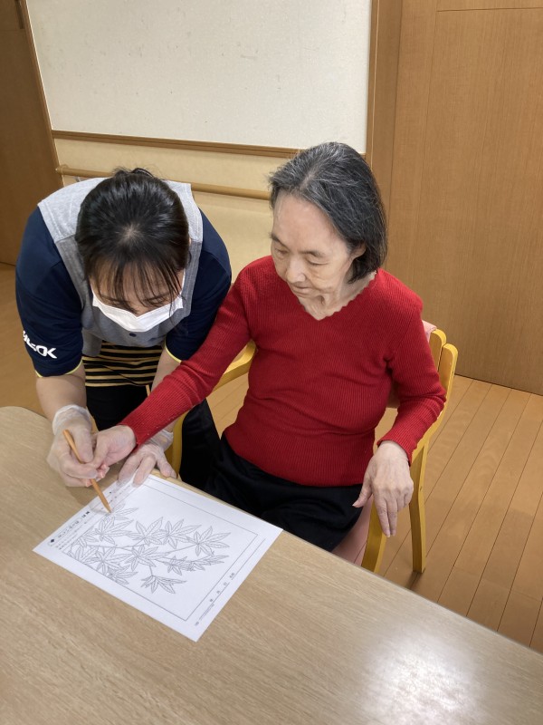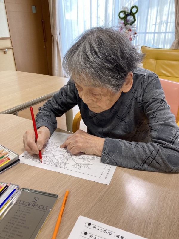 今回は、秋の紅葉塗り絵の様子です。