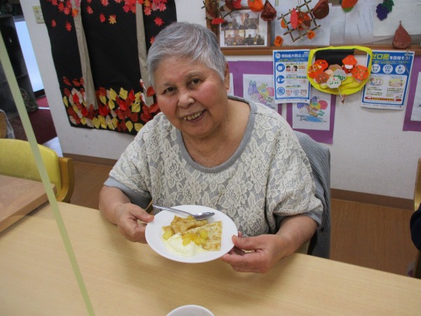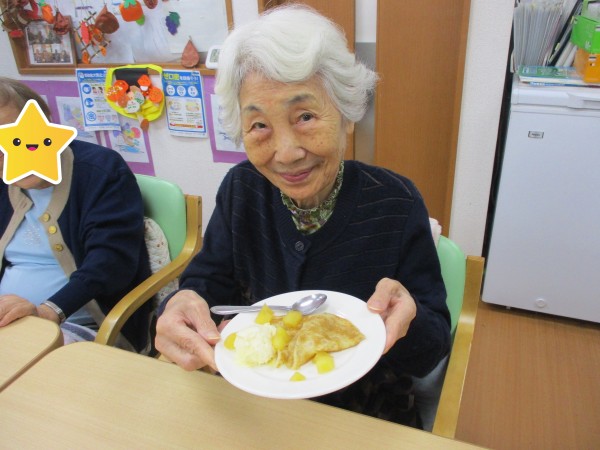 今回のおやつイベントは 旬のリンゴを使用した クレープ です。