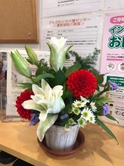 先日、入居者様のご家族様より素敵なお花をいただきました。