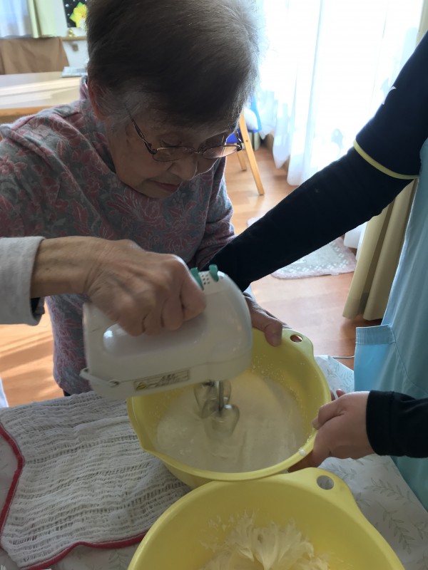 ハンドミキサーを使って材料を混ぜていきますっ♪