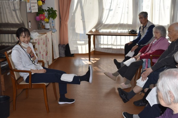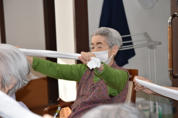 「みんなの家・川崎中野島」本日は佐倉先生の「タオル体操」の時間です。