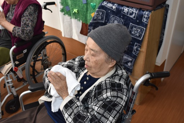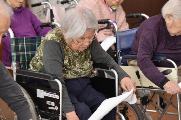 タオルを握る、絞る、投げる、結ぶ、多様な動きを取り入れているので