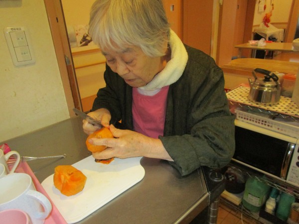 先日、入居者様のご家族が庭で取れた柿を持って来て下さいました。