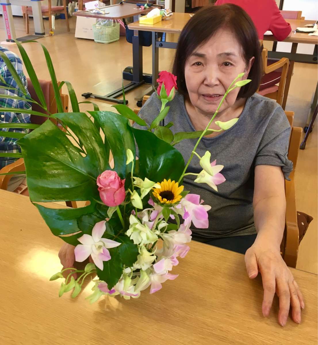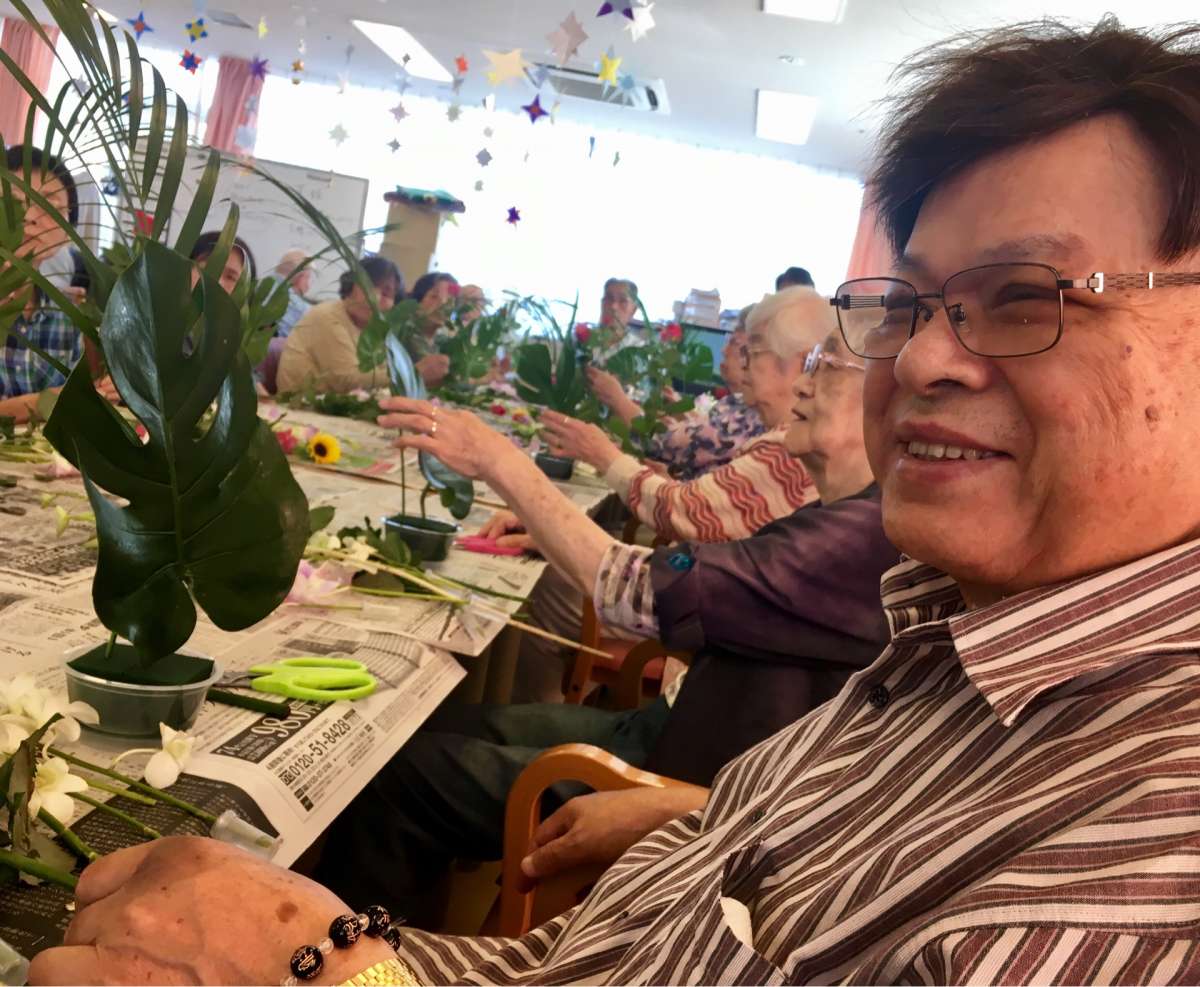 デイサービスセンター遊・新横浜では、フラワーアレンジメント教室を開催して