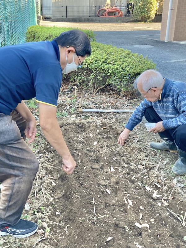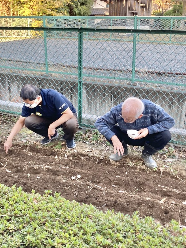 今日、畑に小松菜を種まきした様子です。