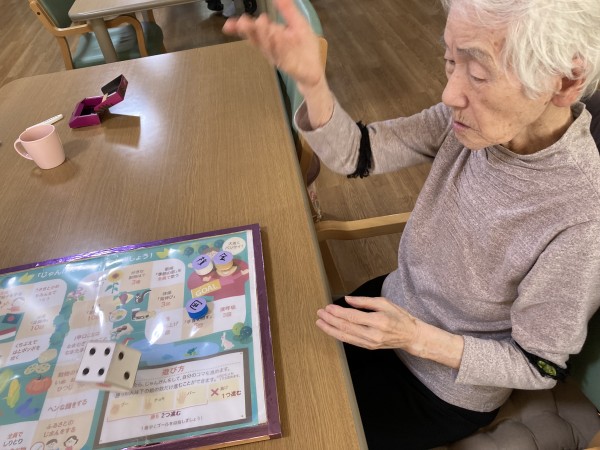 こんにちは! グループホームみんなの家・川崎野川南台です! すごろくを振って手の運動をしましょう!