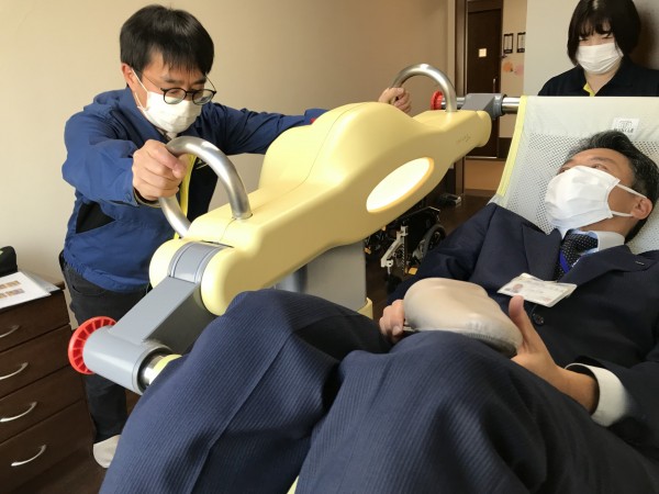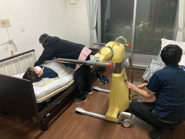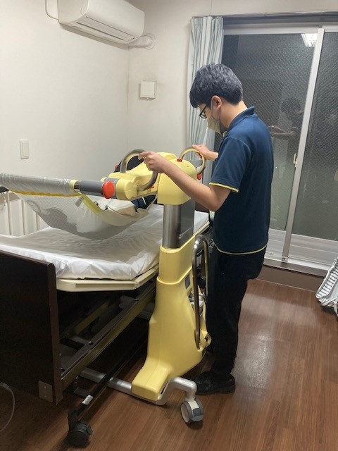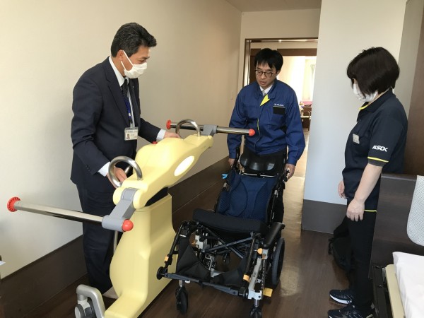 試験的に移乗介助ロボット「SASUKE」を導入しました。これはご利用者様の移乗時の職員の腰への負担軽減と、より安全な移乗介助の助けとしてお試しで使う事になりました。