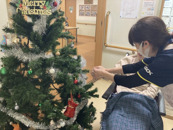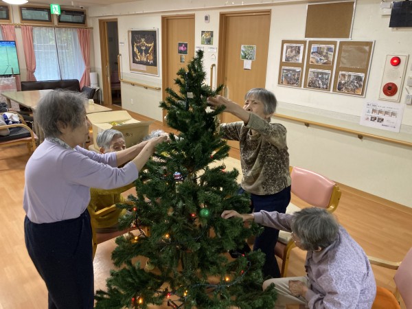 先日、利用者様と一緒にクリスマスツリーを出しました。