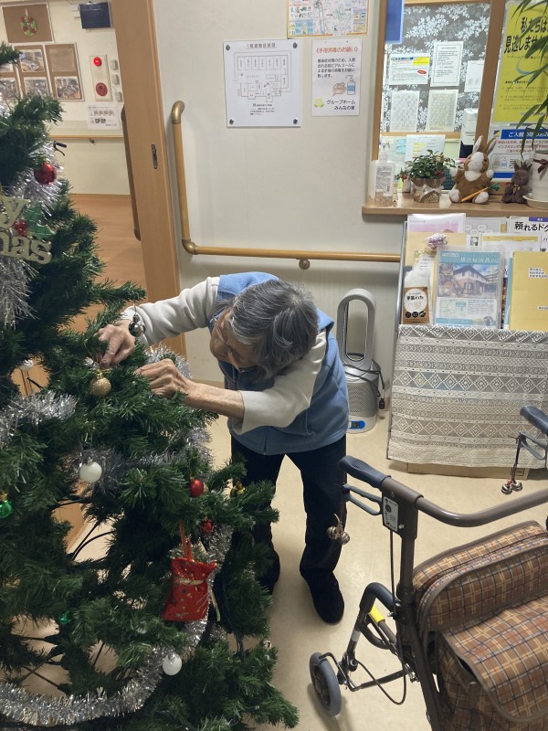 利用者様同士、「こっちの飾りが足りない」「あっちが飾りが寂しい」と、声を掛け合いながらきれいに飾られています。