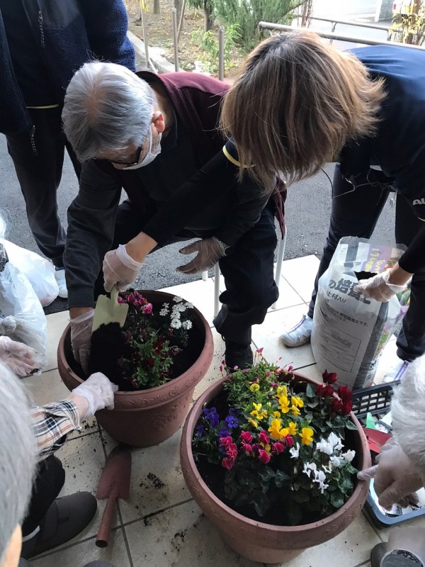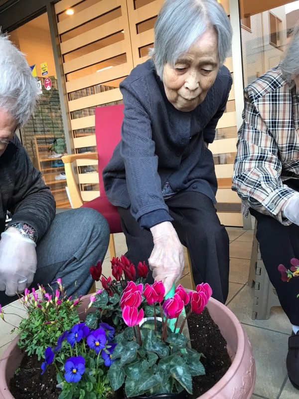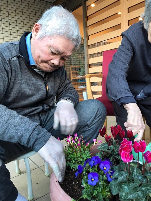 冬に咲く花を寒い季節もガーデニンを楽しめるように、植木職人だったご入居者様にご指導いただきながら植えてみました。