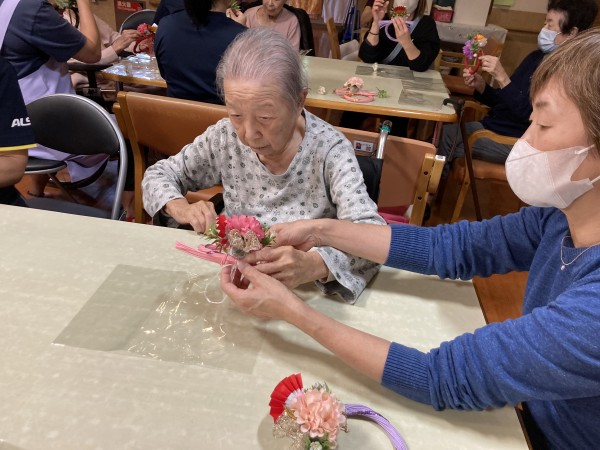 12月12日に近くの三保1のホームにてオレンジカフェを実施今回は新年飾り作りを行いました。数名ホームからも参加させていただきました