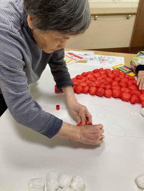 お花紙で包み小さな玉を作って