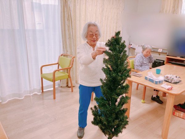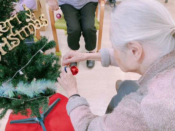 先日、午後のレクリエーションでクリスマスツリーの飾りつけをして頂きました(^^♪