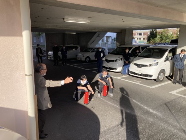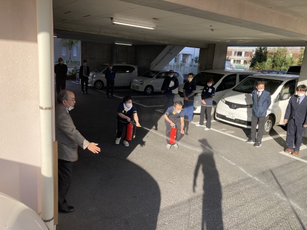 新羽消防署からお借りした水消火器で