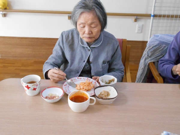 昼食はチキンライスとミネストローネ。