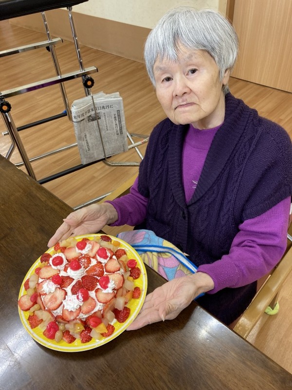 今日のクリスマス会に向けてケーキの準備を手伝ってくださっています。
