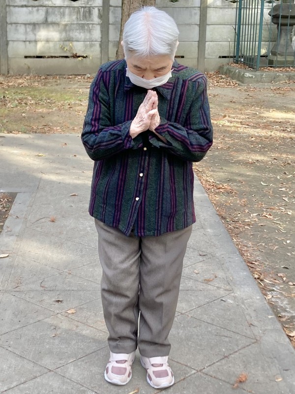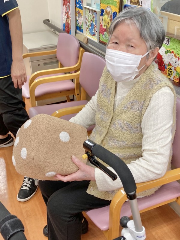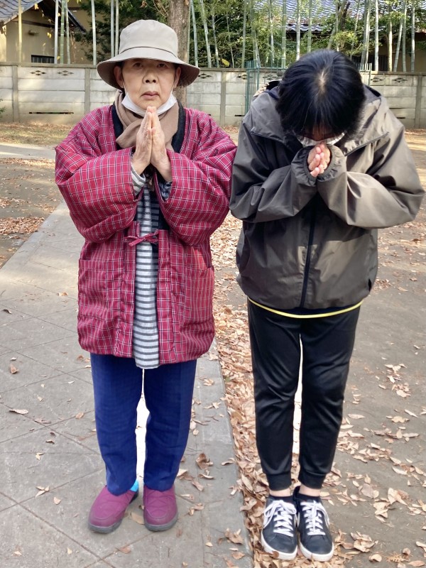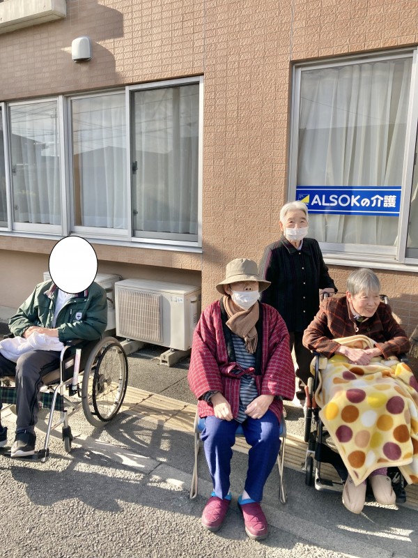 施設前で日向ぼっこしています。日差しがよく出て、心地よかったとの事です。