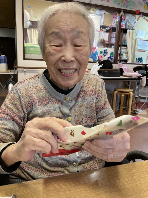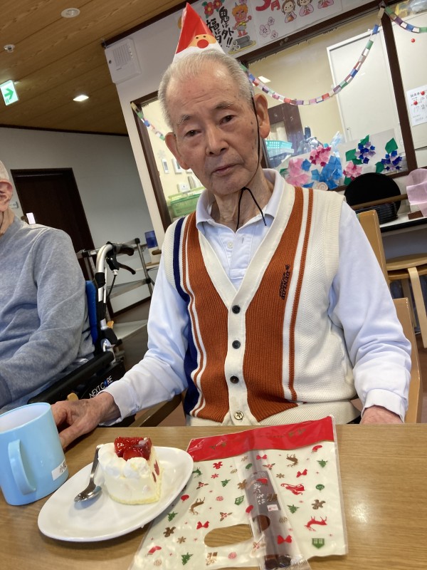 入居者様はクリスマスケーキをとても美味しそうに召し上がり、プレゼントも喜んでくださいました