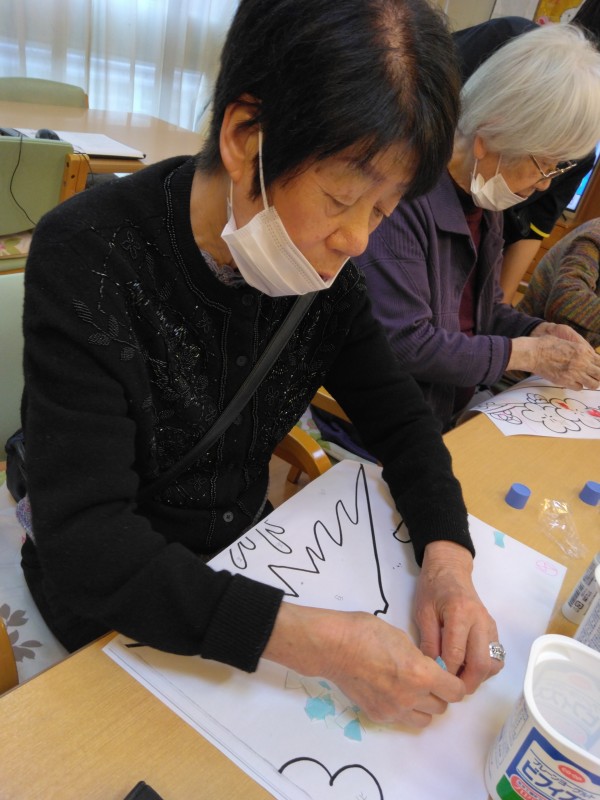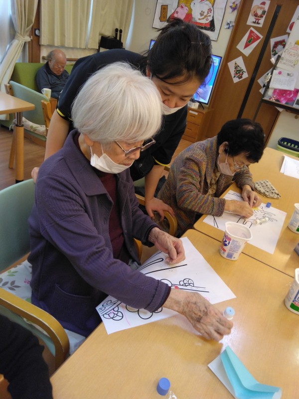 デイサロンかたくりの里では、毎年恒例の『干支の貼り絵』作りかスタートしています。