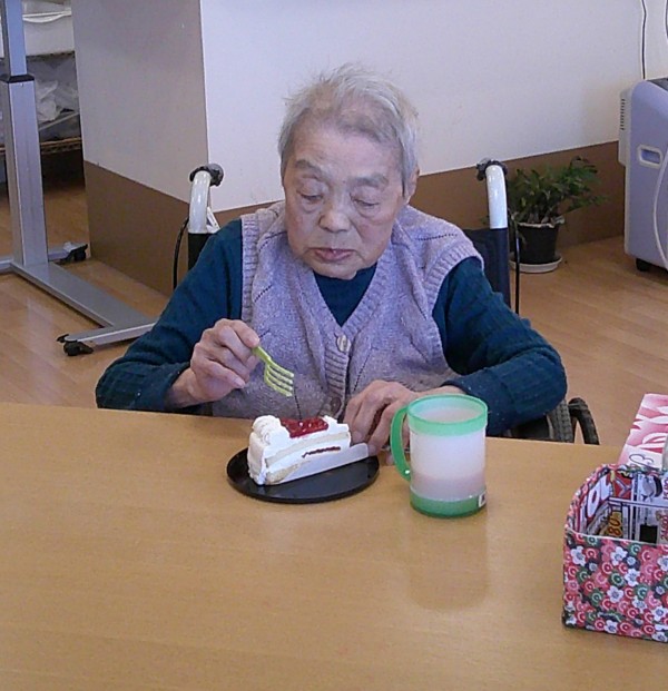 歌い終わった後のおやつには、ケーキを召し上がっていただきました。
