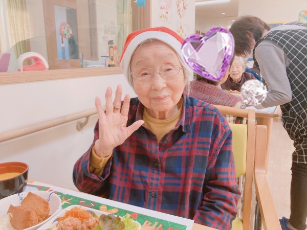 ご飯の前には皆様でジングルベルを歌いました!最初は恥ずかしかったお母様も歌っている職員に合わせて一緒に楽しく歌っておられました