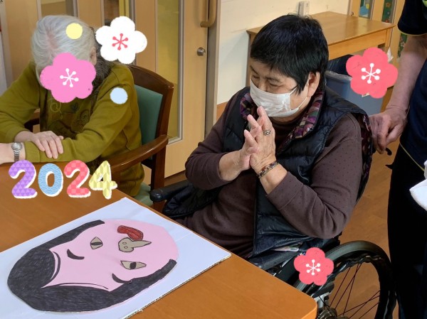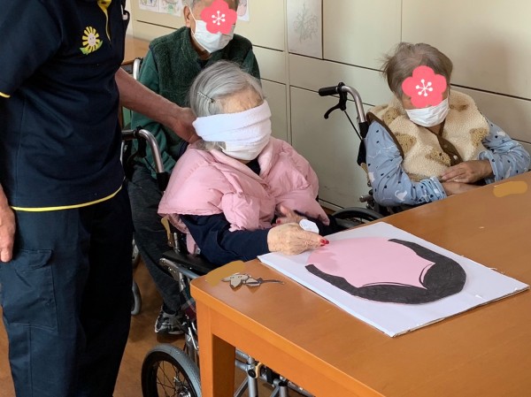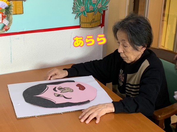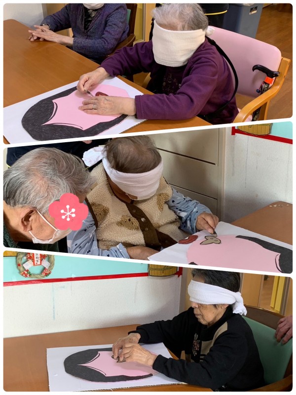 今年初めのレクリエーションは、福笑い