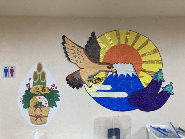 1月の貼り絵は一富士二鷹三茄子!の縁起物です(^^)