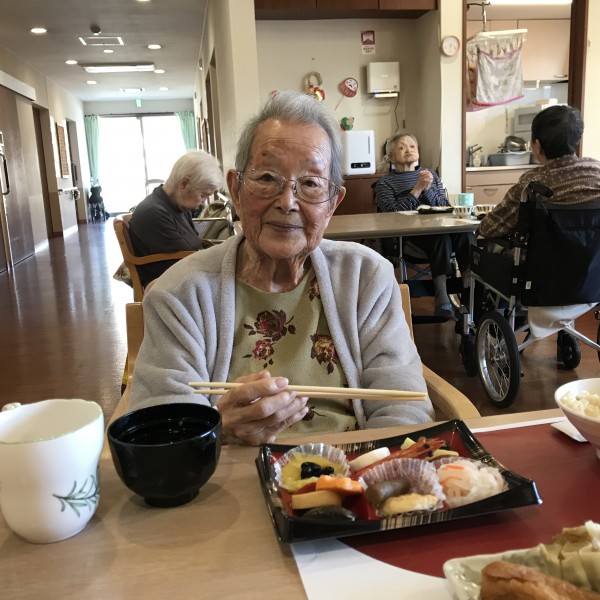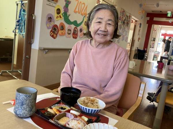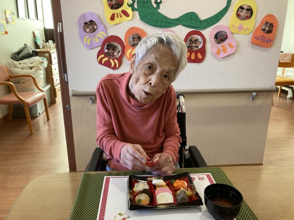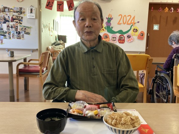 毎年恒例のおせち料理、炊き込みご飯、お吸い物と元日に
