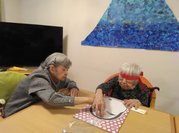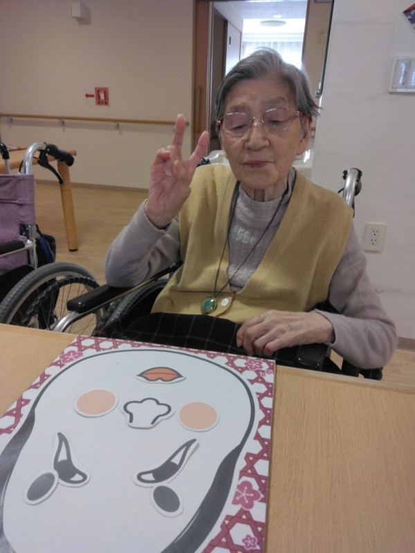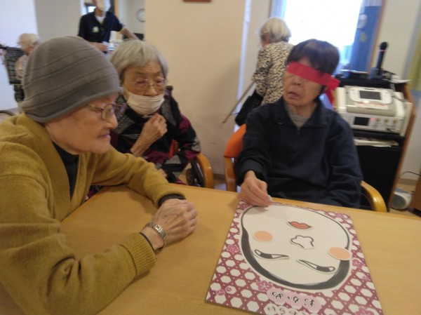 今年最初のレクリエーション活動で「福笑い」を行いました。
