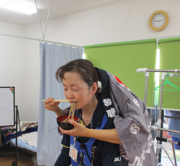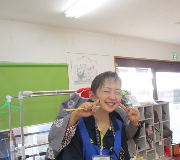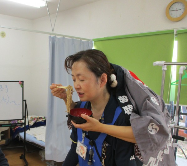 お正月の出し物と言えば・・・「二人羽織り」 スタッフが体を張りました(笑)