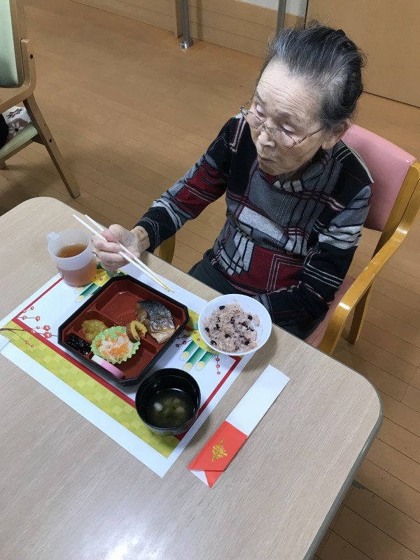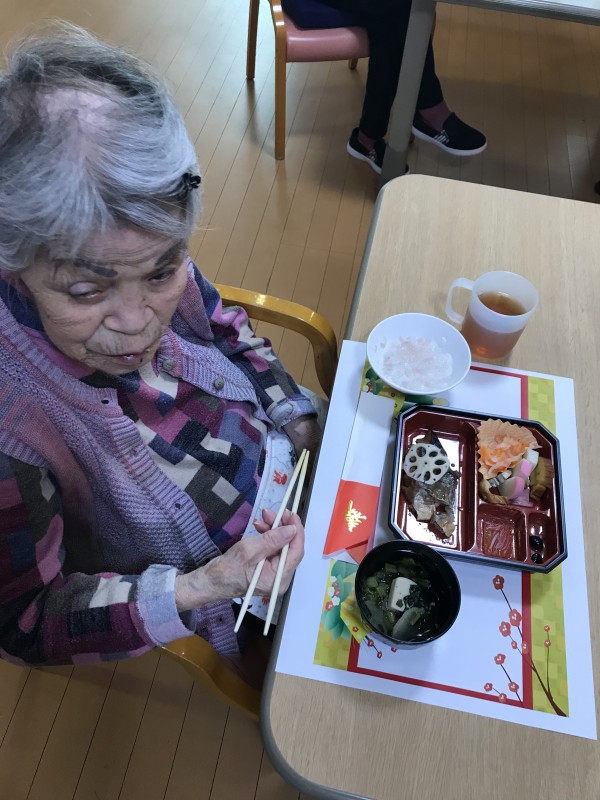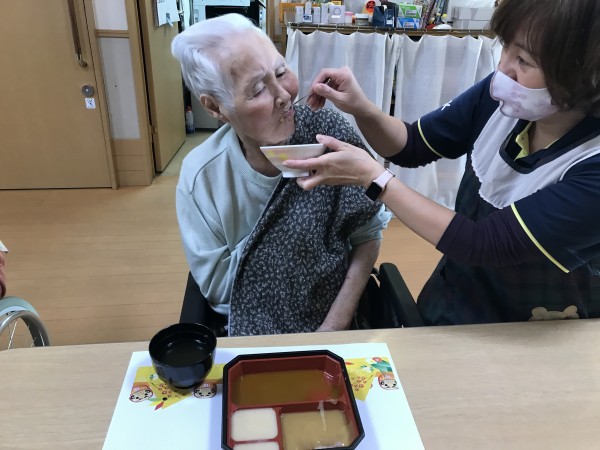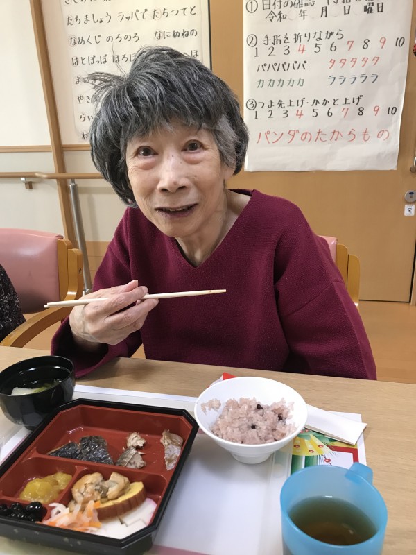 ♦黒豆♦汁物(雑煮)♦お赤飯♦と利用者様にお正月を感じて頂けたら‼