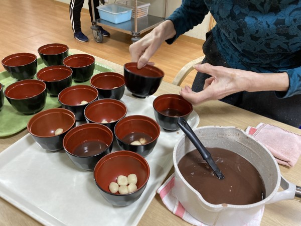 テレビのお正月番組を見ながら元旦はゆっくり過ごし、おやつはみなさんと一緒にお汁粉を調理しました♪
