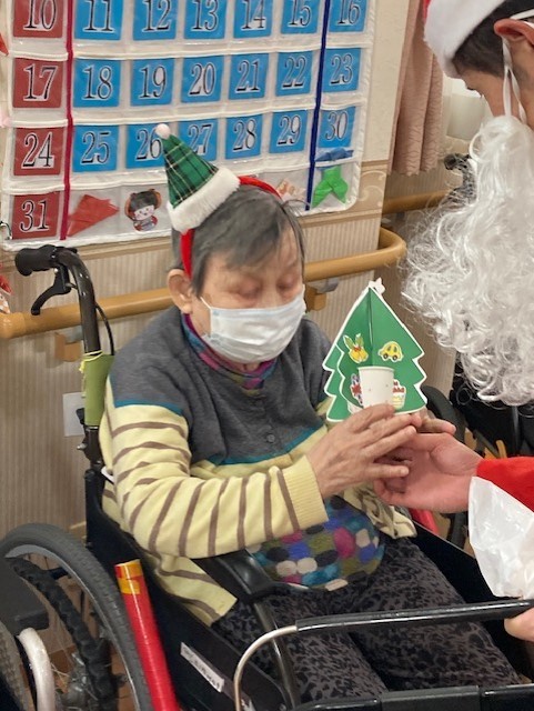 こちらの方々「サンタさ~ん、プレゼント頂戴」と会が始まった時からお願いされていたようです(⊙o⊙) 待望のプレゼントを受け取られ「ニッコリ」*^____^* 楽しみだったんですね( ̄︶ ̄)↗