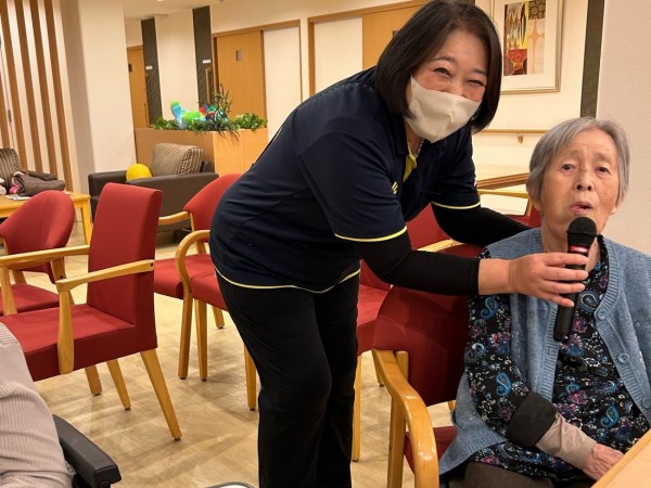 (*ˊ˘ˋ*)♬︎♪????♬︎♪???? ????????♬︎♪マイクを向けたら、いつもは「歌わない・・」と言っていたご入居者様が一緒に歌った下さいました。